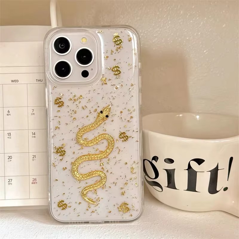Product Name | 2025 New Product 3D Gold Foil Sparkling Golden Snake Phone Case For Iphone 16 15 14 13 12 Pro Max 11 XS XR Epoxy Cover Fundas